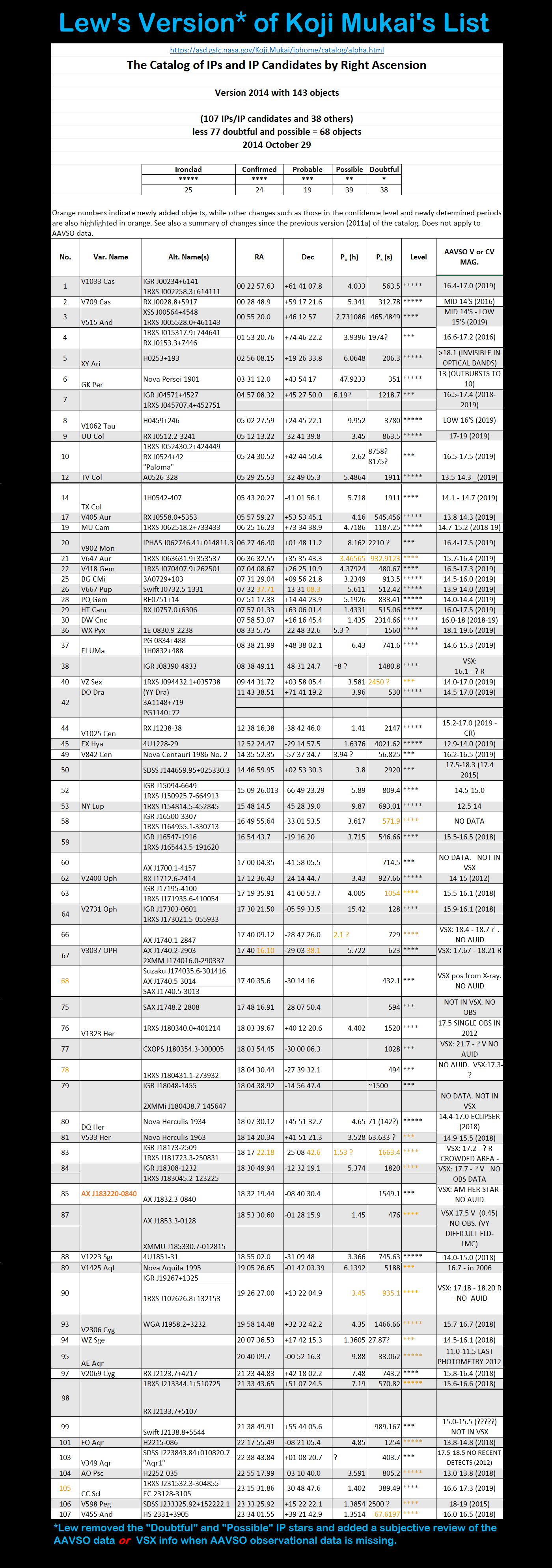 https://asd.gsfc.nasa.gov/Koji.Mukai/iphome/catalog/alpha.htmlSincethen, Berto Monard updated his observationswhich prompted me to refresh my list. Slowly*, I did so. Here it is as an image and as an Excel spreadsheet.